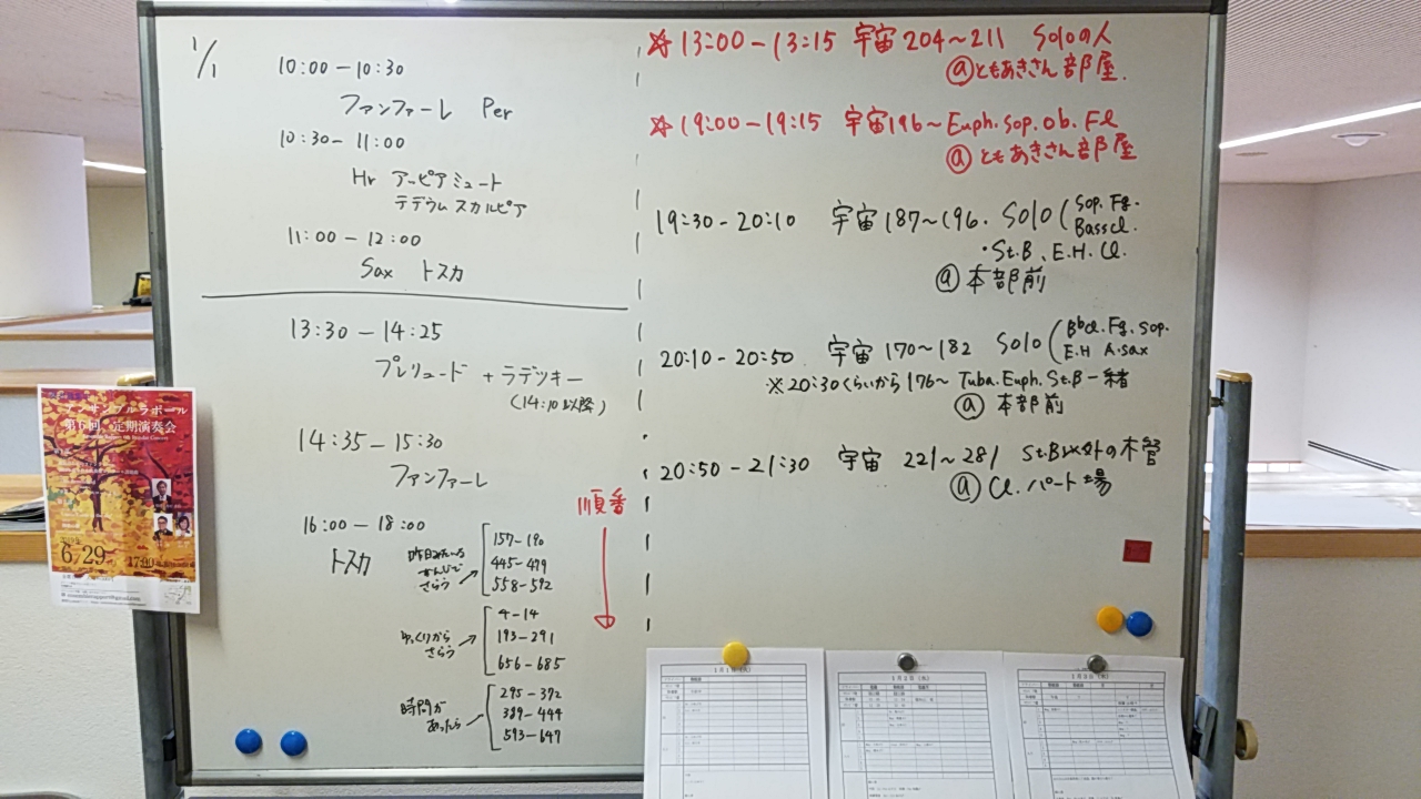 終礼後には、いつものようにパートリーダーと指揮者が集合していました。