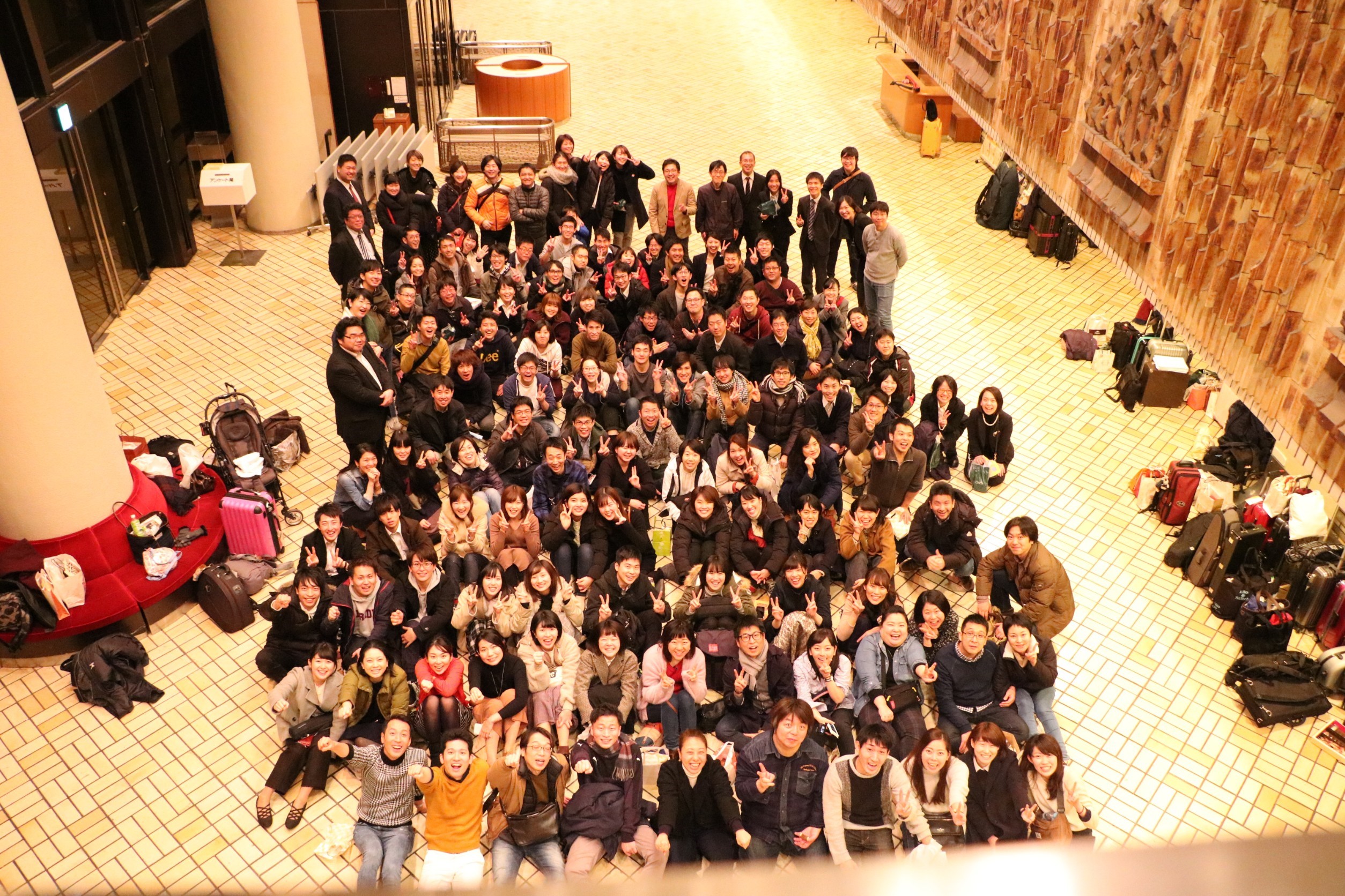 その後、後発バスも到着し、メンバー全員がホールに入館。