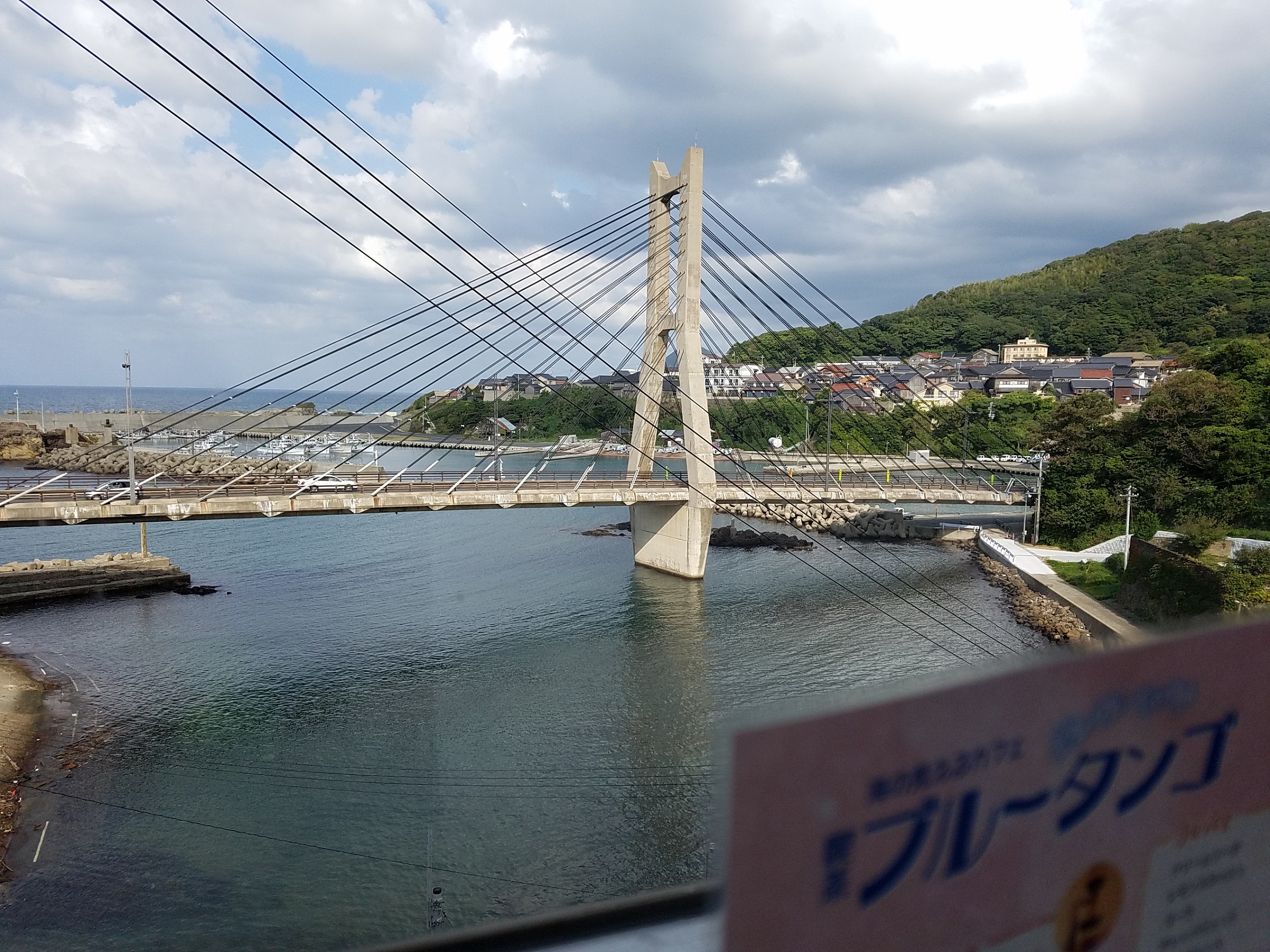 窓越しには間人(たいざ)漁港と間人大橋、そして広がる日本海。