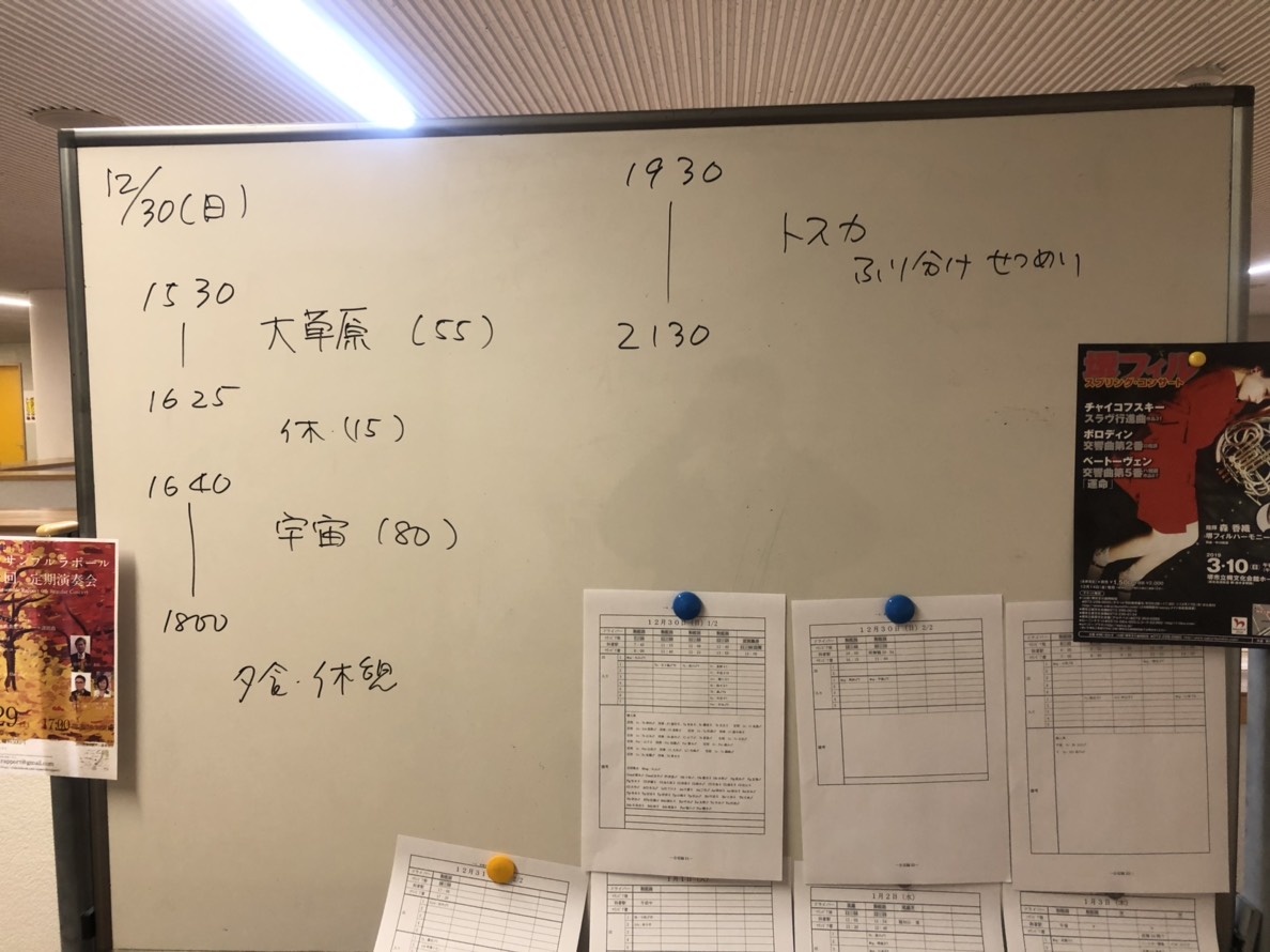 5泊6日の合宿で一気に演奏を作り上げる当団の裏で、スタッフたちの健闘を見逃すことはできません。