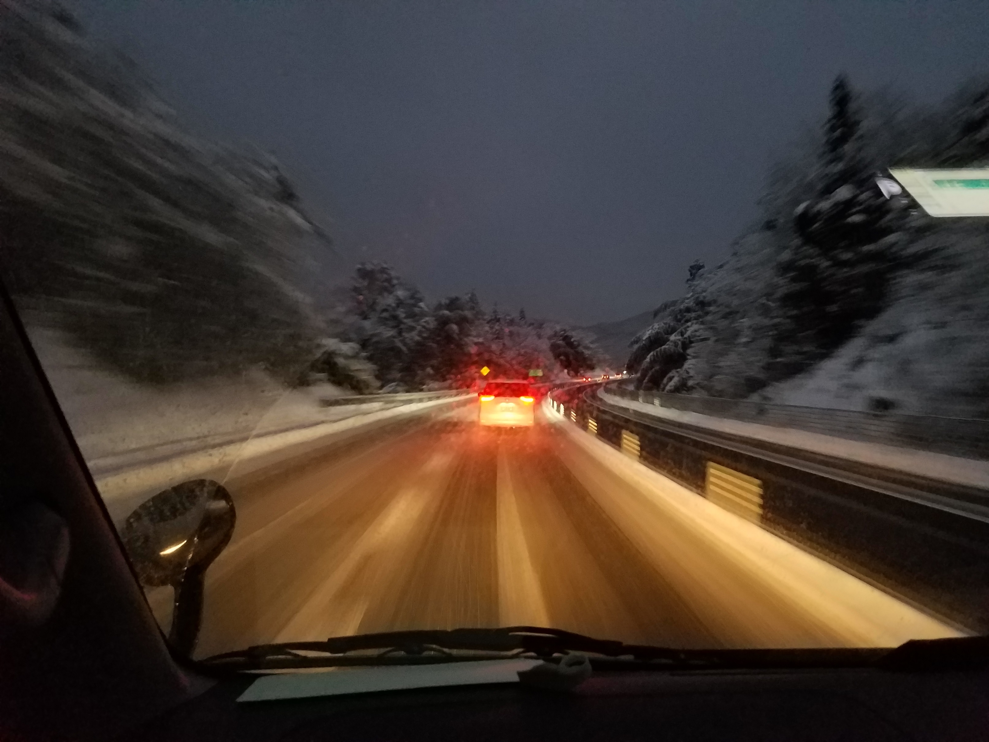 前々日からの積雪により、途中冬用タイヤ確認渋滞に巻き込まれながら、
